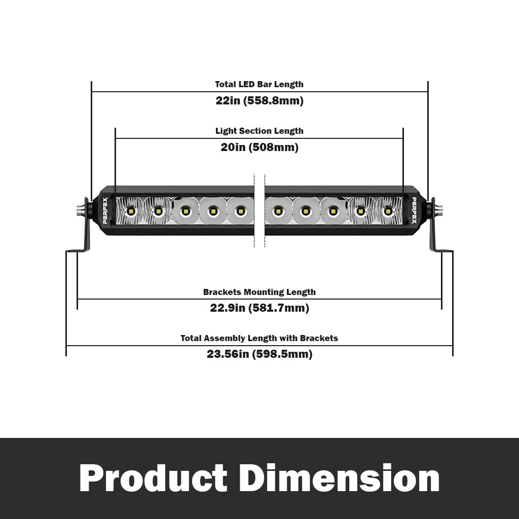 Experience the superior lighting of the PERFEX Signature Series PRO, Single Row 20" LED Light Bar. Perfect for ATV and UTV adventurers who need powerful, focused illumination without the added bulk, this compact yet powerful light bar is a game-changer for off-road journeys.